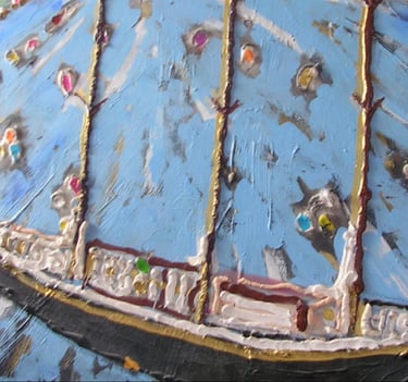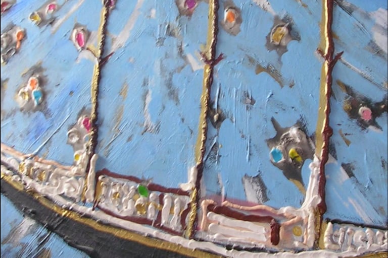 Even while living in one of the most beautiful cities in the world, the blue of the Mediterranean Sea has always remained deeply rooted in her heart and her paintings, becoming a defining element of her artistic identity.