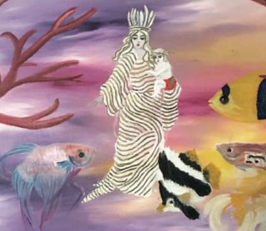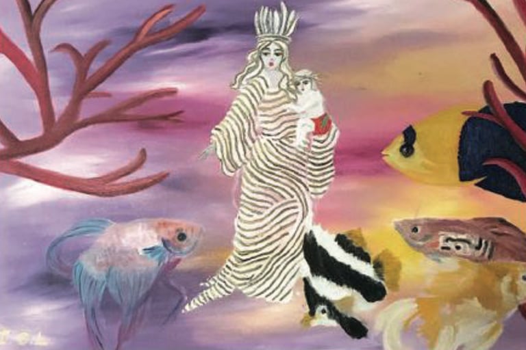 Dipinti surrealisti ispirati dal Mediterraneo e dal Giappone